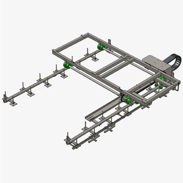 Querfahrwagen versetzen das Transportgut von einer zur nächsten Förderlinie. Hierbei wird auf ein spurgebundenes Transportsystem zurückgegriffen.