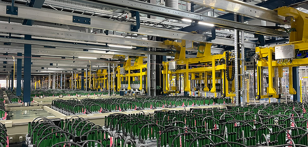 Palettenfördersystem mit EHB-Kreislauf für Autobatterien